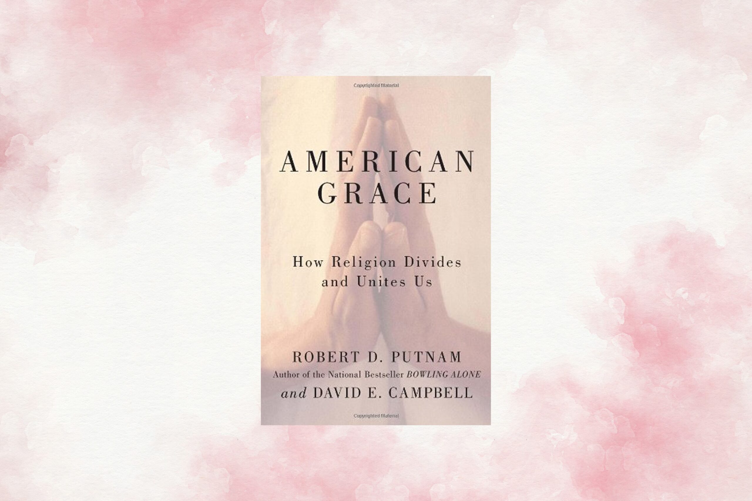 In American Grace: How Religion Divides and Unites Us, Robert D. Putnam and David E. Campbell explore the patterns of United States religious observance, diversity, and tolerance. Citing examples of the transforming public face of religion in America—namely recent litigation surrounding religious markers on public land and, since John F. Kennedy’s presidency, the mainstreaming of Catholic political candidates—Putnam and Campbell sense that “something has changed” over the past half century in American religious life. Naming a dual change—greater religious polarization and increased religious pluralism—Putnam and Campbell seek to explore how these seemingly oppositional transformations have come to be.